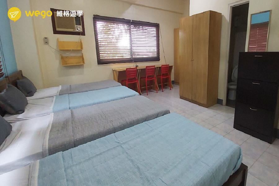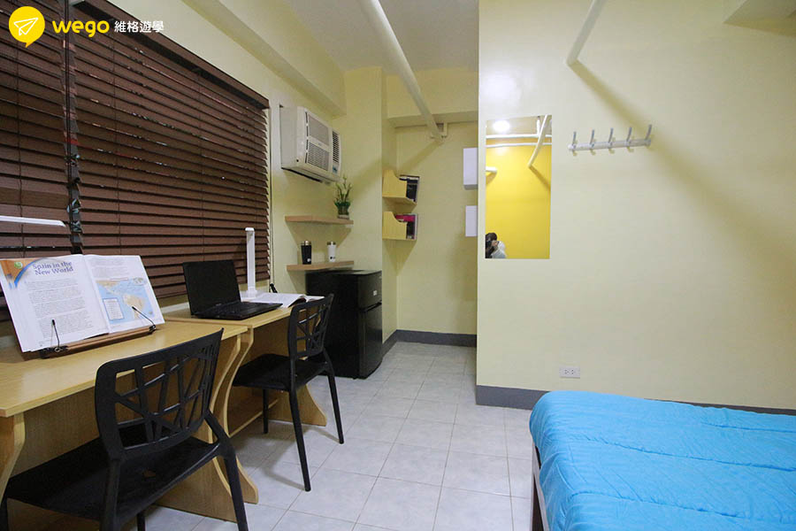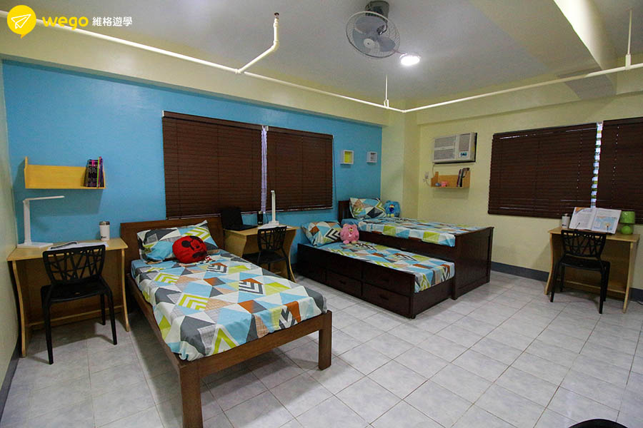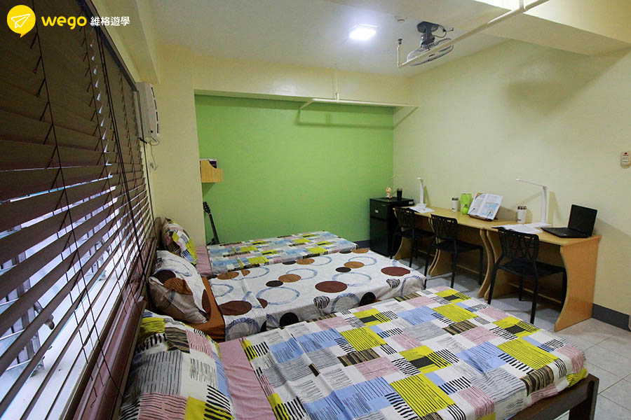 位於宿霧高級社區,宿舍配備獨立衛浴、冷氣、冰箱、地毯等,並設有泳池、自修室、健身房及醫護室,生活學習一站式完成。 -
