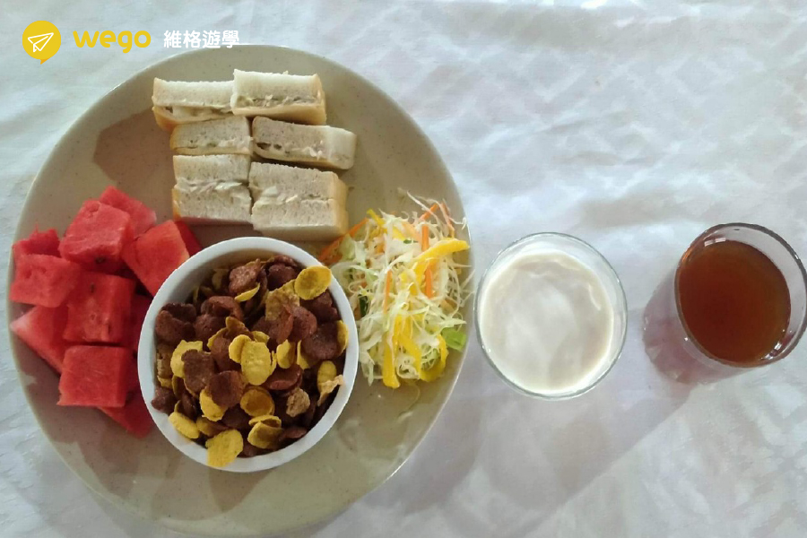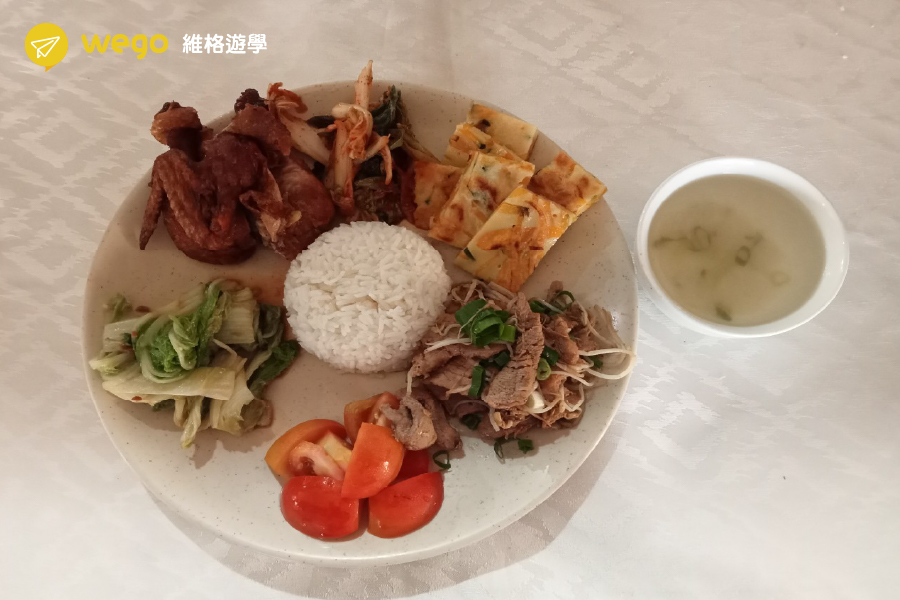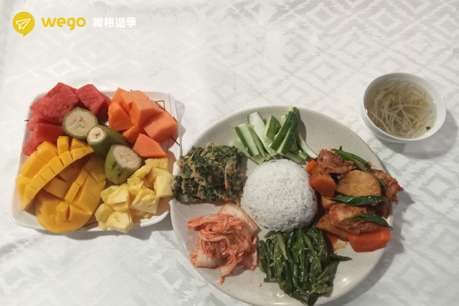 此外,學校提供的餐點以韓式風格為主,週一晚餐還會供應各種熱帶水果,讓我們感到非常喜愛與滿足。