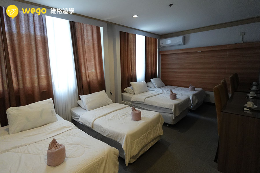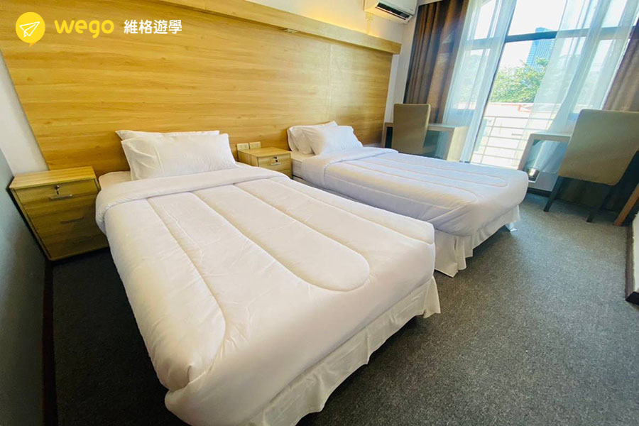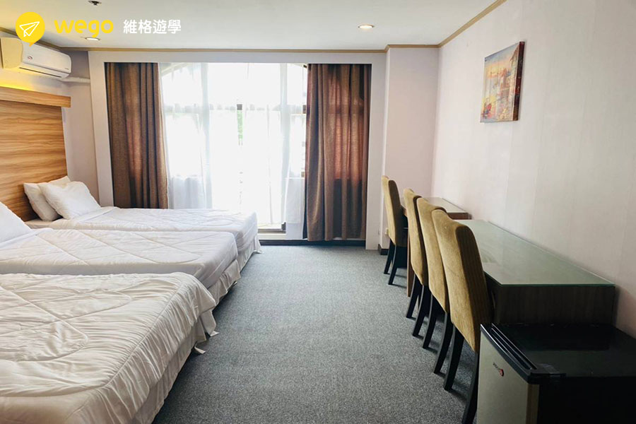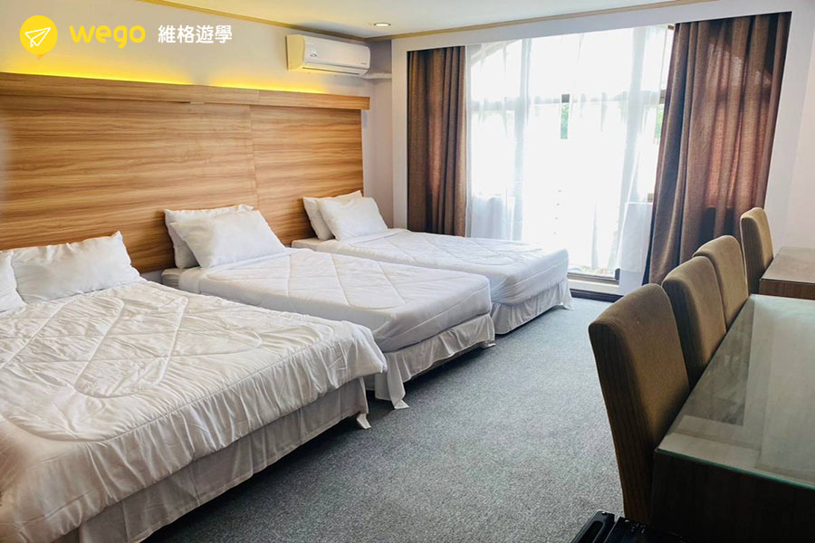 學校提供高品質的住宿環境,包括星空游泳池、健身房、卡拉OK、撞球室等,並位於市中心,交通便捷,生活機能良好。此外,宿舍分為不同樓層,分別提供男生、女生與混合住宿選擇,確保學生擁有舒適且安全的學習環境。