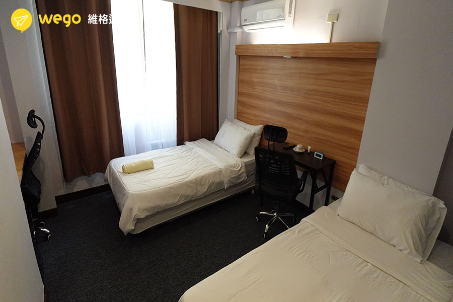 - 衛浴、床、桌椅、冷氣、房門卡、冰箱