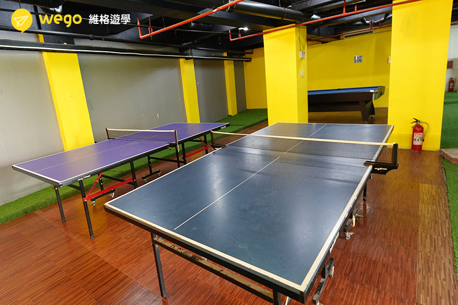 - 提供 飯店式住宿,包括 星空游泳池、健身房、有氧區、拳擊場、撞球桌等,讓學生擁有舒適的學習與生活環境。