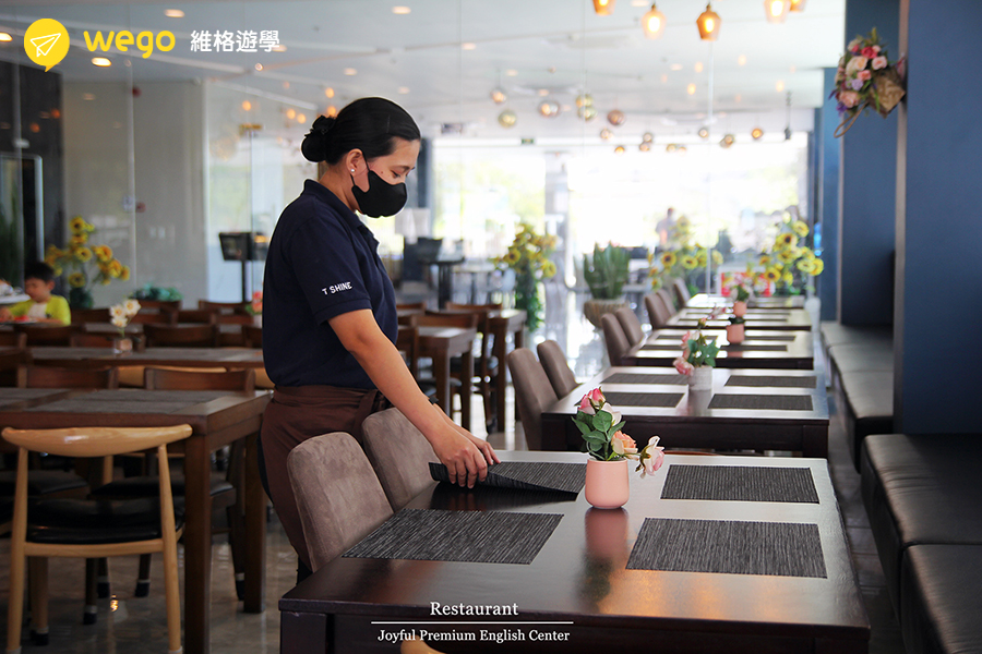 - 飯店式校園體驗:Joyful English Academy 位於宿霧 Mactan 的 T-Shine 飯店,學生在此學習英語的同時,也能使用飯店提供的泳池、健身房和咖啡廳等設施,創造一種融合英語學習與休閒享受的高端生活體驗。