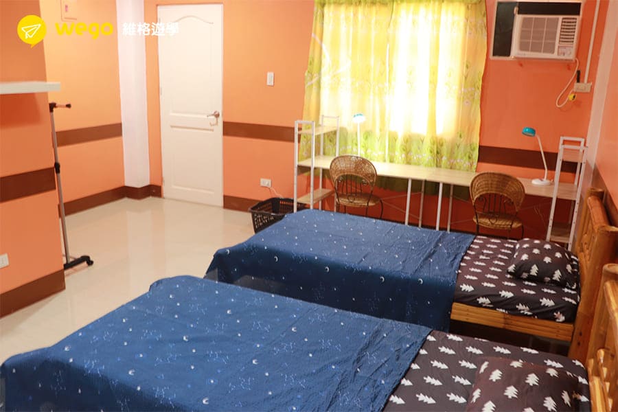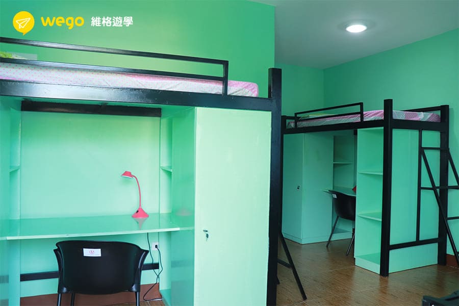 - 獨立衛浴、床、書桌、椅子、衣櫃、冷氣