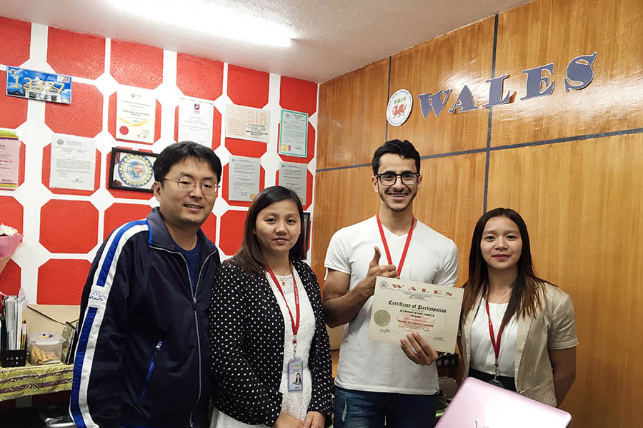 WALES 位於碧瑤地區經營已10多年,校長為早期深耕在碧瑤地區親力親為的韓國校長,WALES語言學校是碧瑤地區有自己特色的語言學校之一,標榜的是ESL和雅思教學,針對不同等級的學生給予不同的一對一與團體課堂數教學架構,也是碧瑤地區唯一多國籍比例學生最高的國家,想到碧瑤地區多認識不同國家的學生,也想要有高優質的教學環境的話,Wales是一個明智的選擇喔!! 除了日本、韓國、台灣之外,更有來自沙烏地阿拉伯、土耳其和奈爾及利亞的同學慕名而來,同學們也能藉機在此結交世界各國朋友,體驗不同的文化風俗。