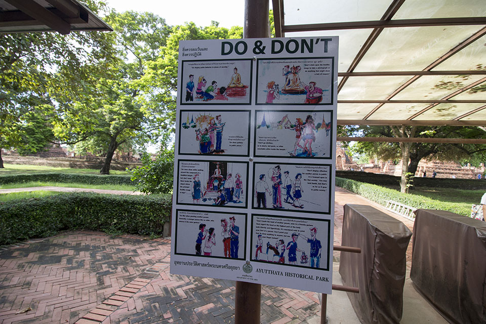 每間廟宇都可以看到這樣的告示牌,主要是提醒遊客一些基本的行為,到泰國旅遊的同時也要記得尊重別人的文化唷。