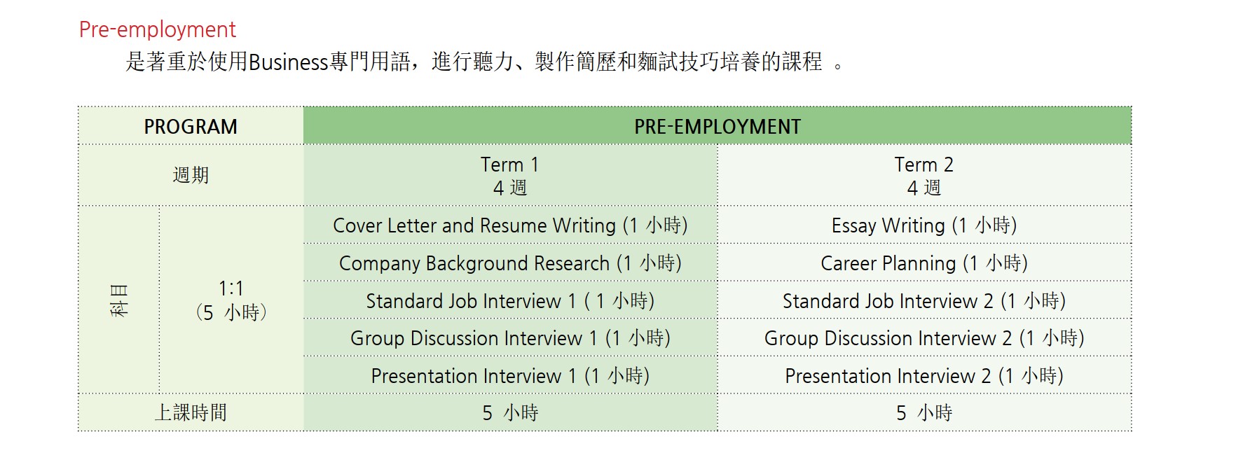 | 基礎商業禮儀 | 履歷撰寫 | 工作面試 |