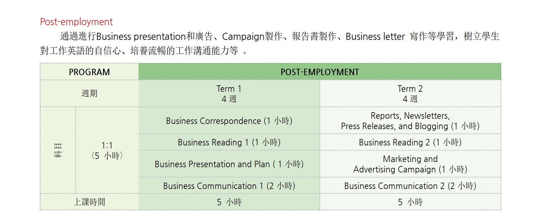 | 商務社交技巧 | 履歷撰寫 | 商務會議主持 |