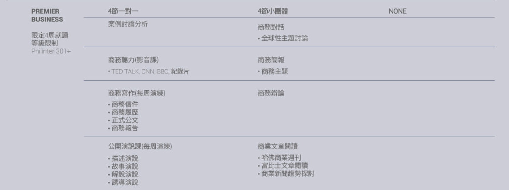 ▲商英進階班(資料來源:Philinter學校簡介)