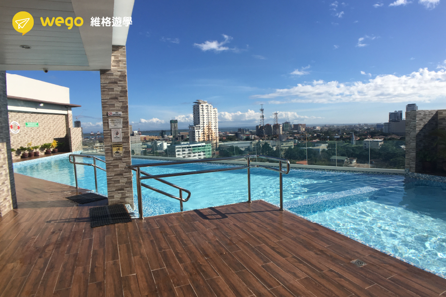 在課後閒暇之餘,伸展運動筋骨也是我們學生不可或缺活動之一。Stragete 的大樓內設有健身方,讓我們想要運動的浩克們可以有最近的地緣之便來這邊訓練維持我們的體態!另外頂樓配有美美的無邊際游泳池,讓你即使在市區也能擁有夏日情懷,享受在宿務的熱情太陽!
